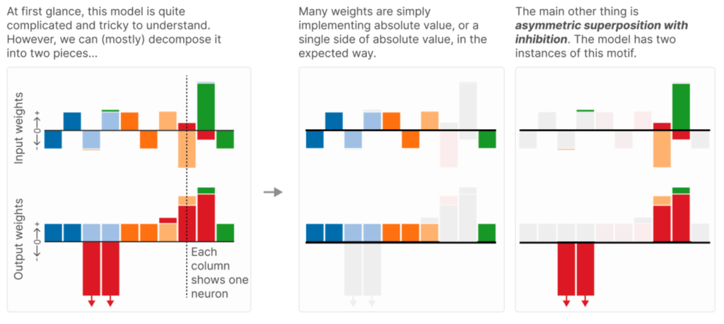 How is absolute value computed in superposition? In addition to the “natural” solution above, they found an interesting motif they called “asymmetric superposition.”