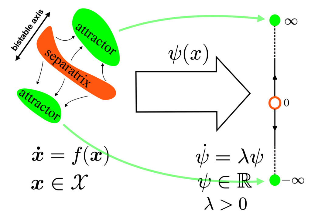- Key idea: map dynamics to unstable scalar dynamics $\psi(x)$
